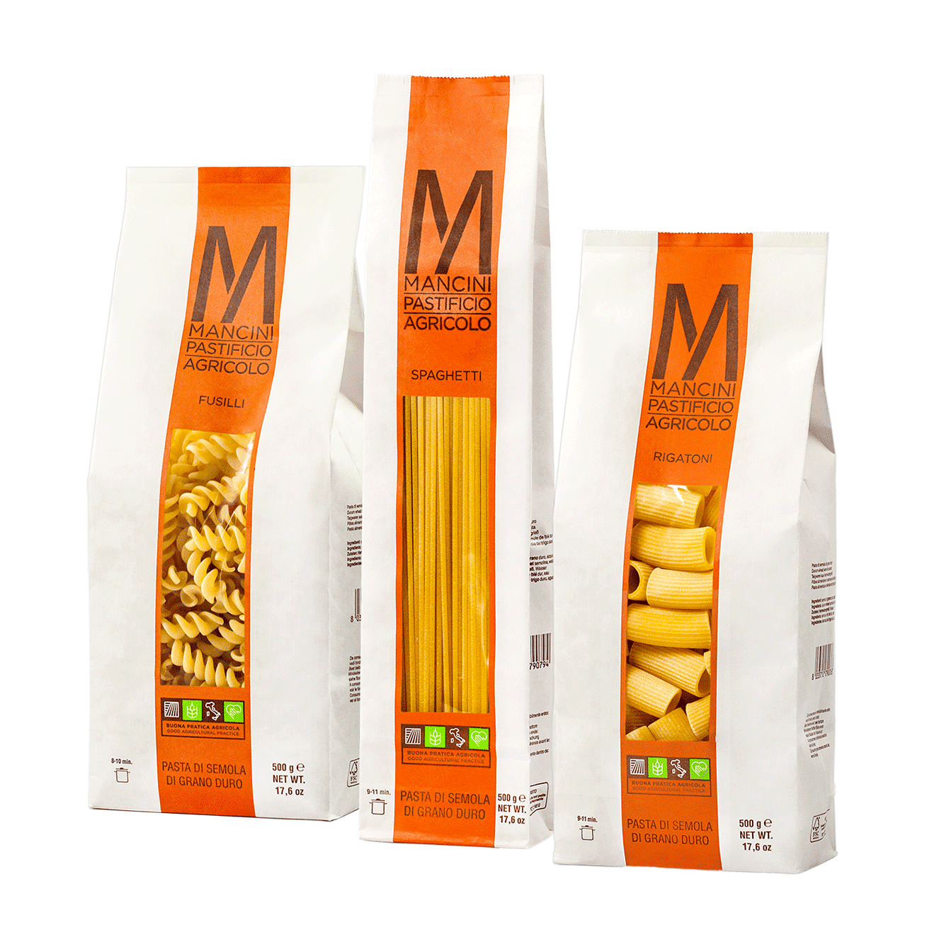İtalyan mutfağının vazgeçilmez lezzetleri Spaghetti, Penne ve Fusilli’nin yanı sıra, gurme damaklara hitap eden Calamarata ve Tuffoli gibi özel makarna çeşitleriyle geniş bir ürün yelpazesi sunan Pasta Mancini, Marche bölgesinin zengin tarım mirasını sofralarınıza taşıyor.